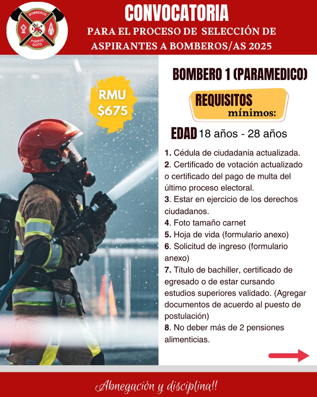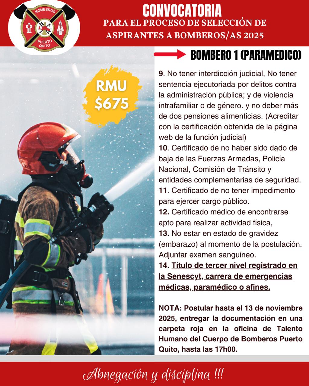 Requisitos específicos para quienes apliquen al cargo de Bomberos 1 (Paramédico).