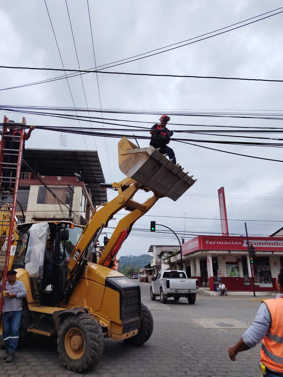 Compromiso con la ciudadanía Miembros del Benemerito Cuerpo Bomberos Puerto Quito, realizaron labores de aseguramiento de cables..